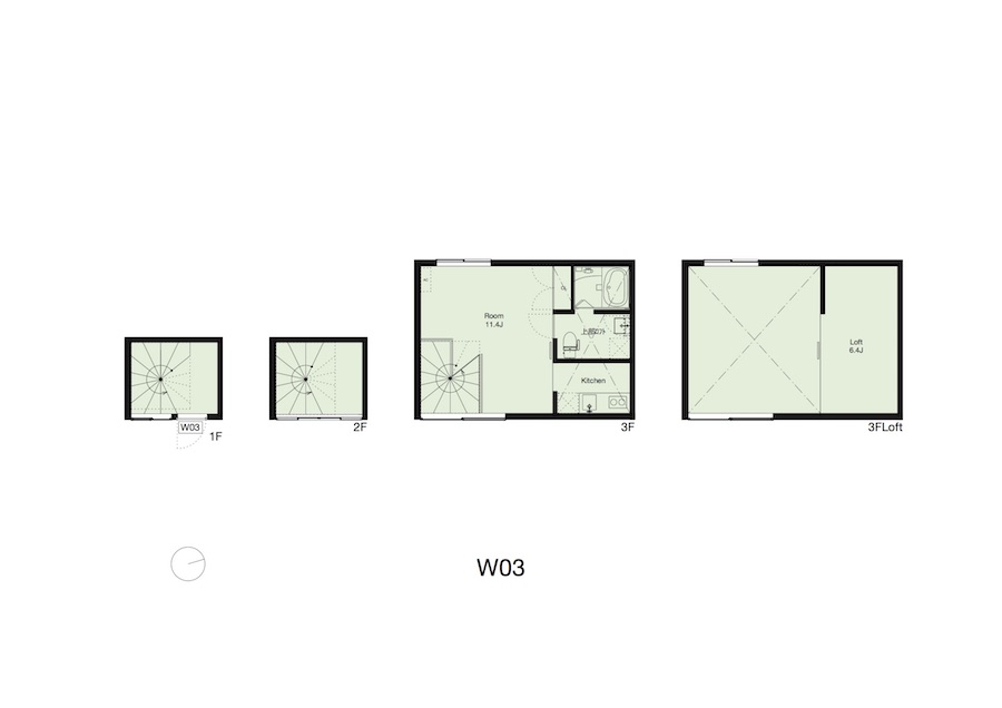 | 部屋面積 | 41.40㎡(1F:6.21㎡+2F:6.21㎡+3F:28.98㎡)+ロフト10.44㎡ |